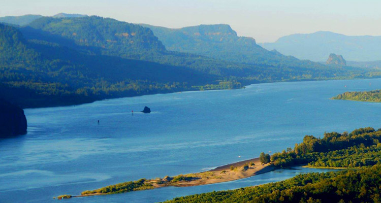 位于落基山脉的美国第四大河流哥伦比亚河在俄勒冈和华盛顿州的交界处形成了一条蜿蜒1000多公里的河谷,河谷风景壮丽辽阔,气势雄伟,美不胜收。如果到了好天气,河面上波光粼粼,甚是好看。 河谷区最有名的是它的几条瀑布,Multnomah瀑布是美国第二长的瀑布,分上下两段,上段落差165米,下段21米,下段瀑布由于宽度较大,更具有可观性,气魄不凡。这里也是户外爱好者的天堂,人们喜欢在这里进行激流皮艇运动,感受一番刺激。