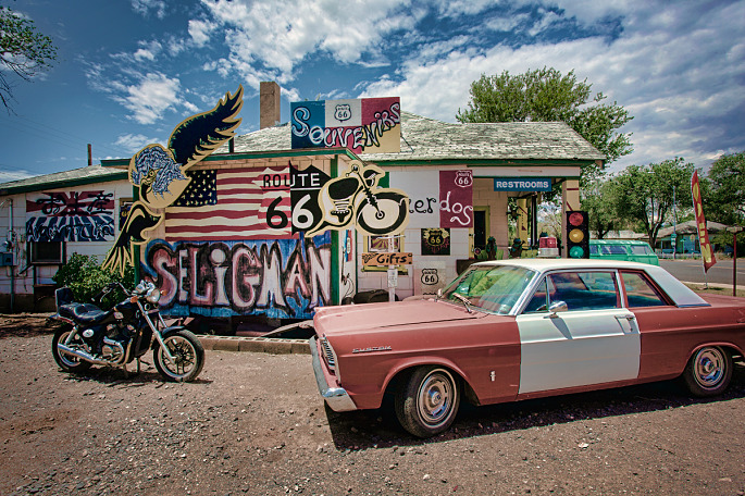 美国六十六号公路(Route 66),被美国人亲切地唤作“母亲之路”。呈对角线的66号公路,从伊利诺伊州芝加哥一路横穿到加利福尼亚州洛杉矶圣塔莫妮卡。66号公路全长: 2448英里(约3939公里)通车使用: 1926年11月11日——1985年6月27日,研究66号公路60多年的学者迈克尔·华利斯说:“66号公路之于美利坚民族,好比一面明镜;它象征着伟大的美国人民一路走来的艰辛历程。