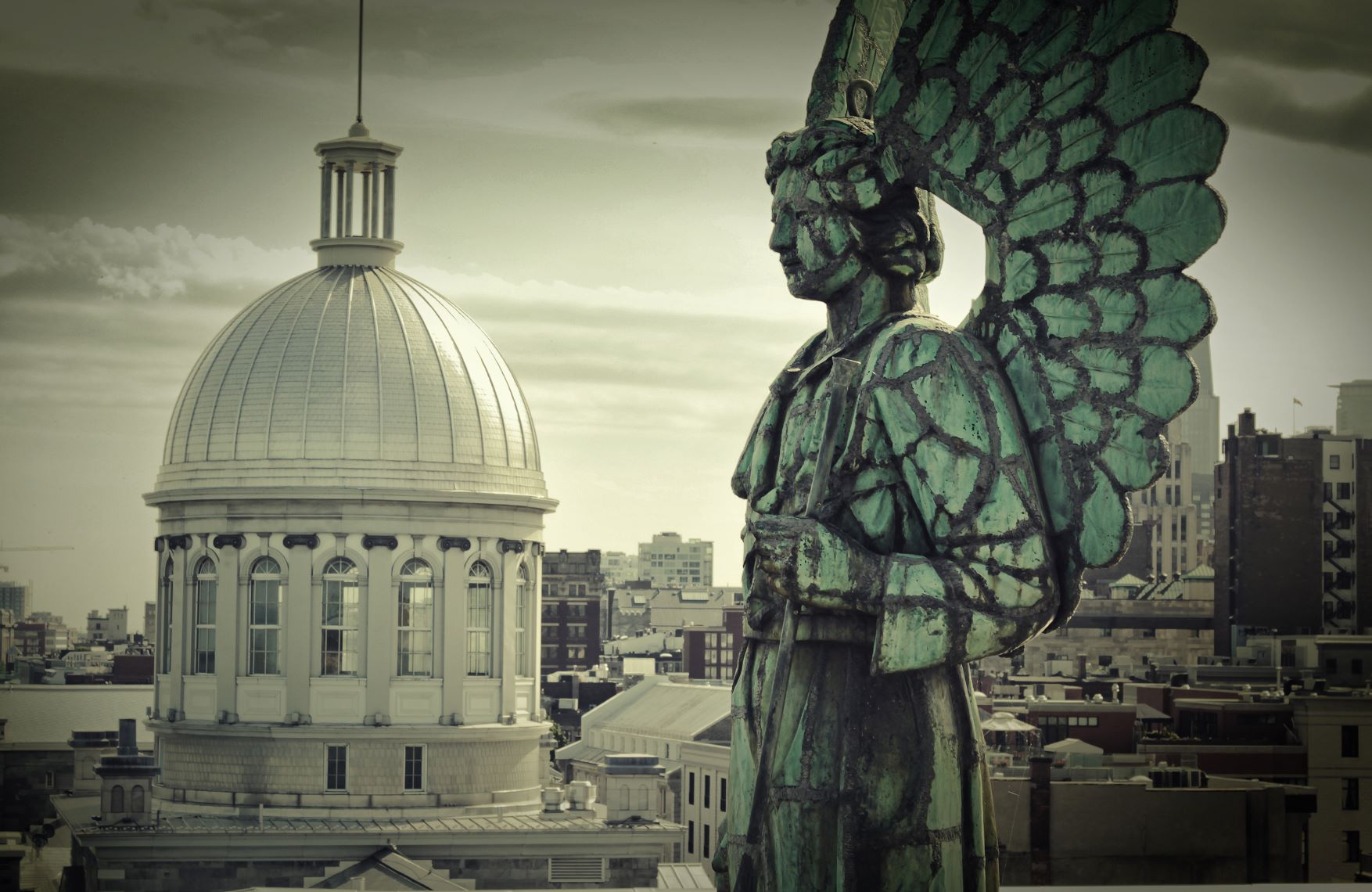 蒙特利尔老城区的雅克 · 卡迪亚广场北侧就是蒙特利尔市的市政厅。始建于1878年,采用的是当时比较流行的“法国第二帝国样式”。1922年,原建筑大部分毁于火灾,建筑师Louis Parant 受命重建,重建的建筑结构采用了当时先进的钢结构设计,风格上为保证原有风格,以法国图尔市政厅为蓝本,同时在屋顶设计上添加了当时比较主流的新装饰主义风格,也修改了原有的板岩屋面材料,改用了铜制屋顶。这个建筑由于布满建筑历史时代发展的烙印,在1984年,该建筑入选加拿大标志性历史建筑名单。